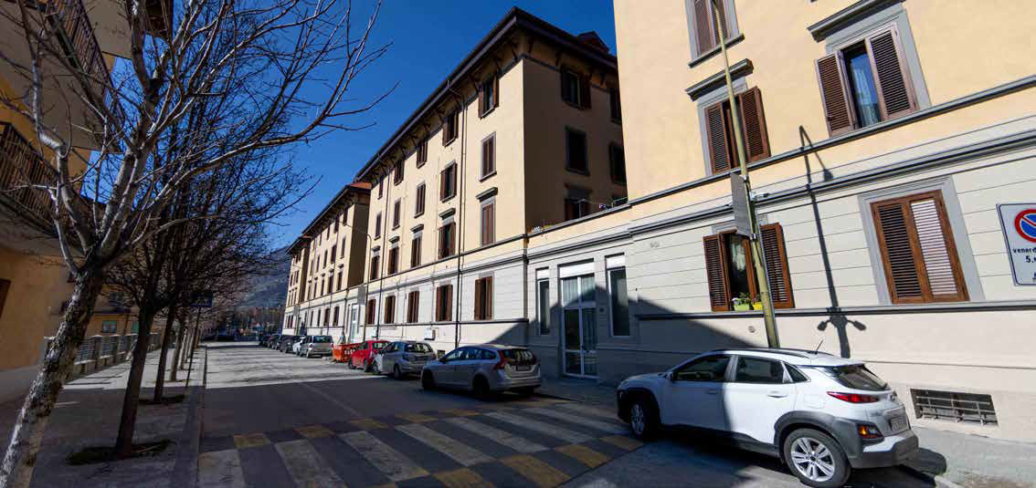 All’interno del Quartiere, l’asse connette nuovi servizi, attività terziarie e commerciali, le riqualificate palazzine Gazzera e Fresia, al momento in stato di abbandono o degrado.